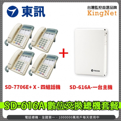東訊 SD-616A 數位交換機 總機x1台 + SD-7706E+ X 6鍵式數位來電顯示話機x4台 套餐 台灣精品