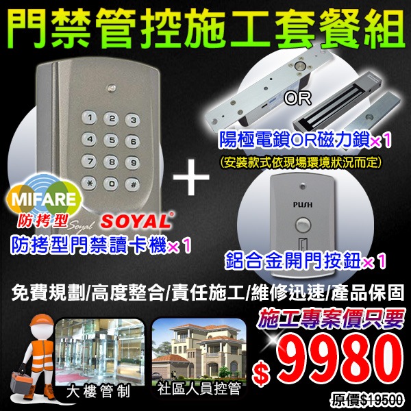 【KINGNET】門禁管制施工套餐組 防拷型門禁讀卡機 + 陽極鎖或磁力鎖 + 鋁合金開門按鈕 大樓管理 社區管制 套房 門禁施工