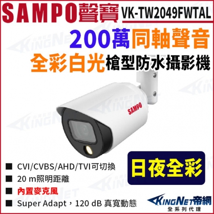 KingNet帝網 SAMPO 聲寶 VK-TW2049FWTAL 全彩 槍型 星光級 紅外線 攝影機 監視器攝影機