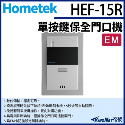 【 帝網 KingNet 】 Hometek HEF-15R EM 單按鍵保全門口機 雙向對講 具電鎖抑制
