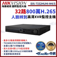 HIKVISION 海康 iDS-7332HUHI-M4/S 32路 800萬 四硬碟 DVR硬碟錄影機 監控主機 人臉識別 人車分析 帝網 KingNet