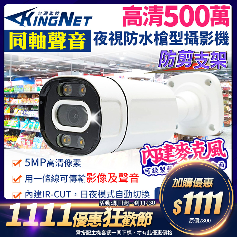 限時加購優惠~【帝網KingNet】 高清500萬 同軸聲音 戶外防水槍型紅外線攝影器 5MP UTC TVI AHD 聲音 收音 監視器攝影機