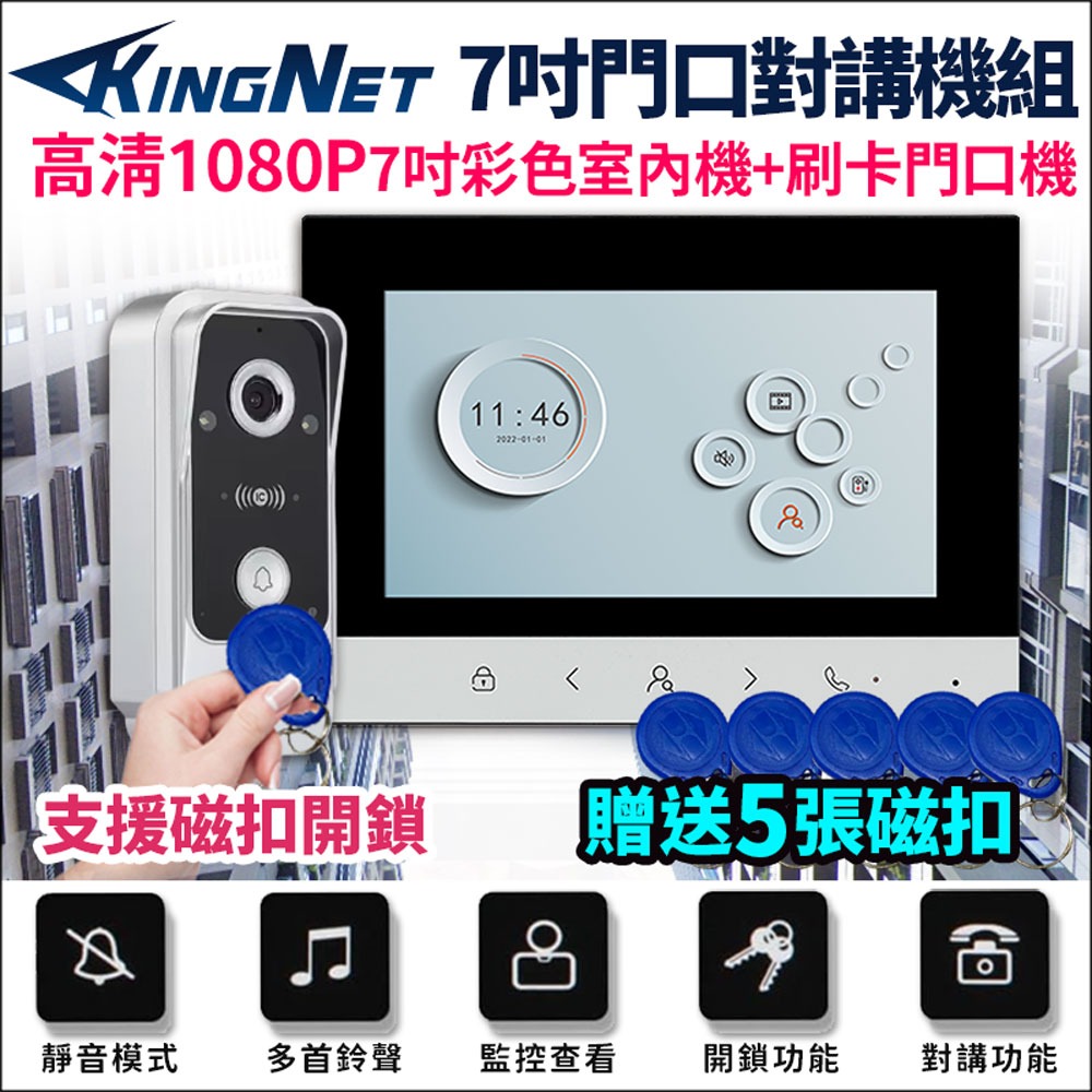 【KingNet】AHD 200萬 7吋門鈴對講機 刷卡門口機 電鎖開門磁扣開門 紅外線 高清對講機 電鈴 1080P