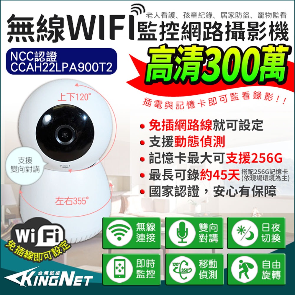 【KingNet】 監視器攝影機 300萬 三百萬 3MP 插卡攝影機 無線 網路攝影機 IPC WIFI 手機遠端 搖頭機 免主機