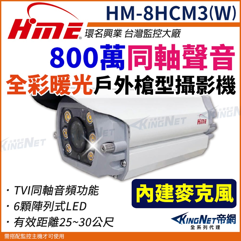 環名HME HM-8HCM3W 800萬 TVI同軸聲音 全彩暖光 防護罩戶外槍型攝影機 帝網 KingNet