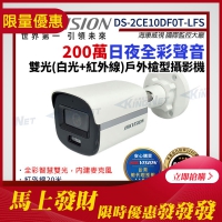 限時優惠~【HIKVISION 海康】DS-2CE10DF0T-LFS 200萬 日夜全彩 同軸聲音 戶外槍型攝影機 雙光 白光 紅外線 監視器攝影機 帝網 KingNet
