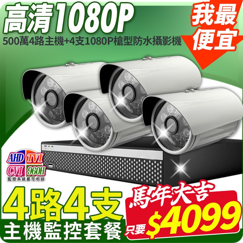 限時下殺~HD 500萬 4路4支 監控主機套餐 500萬 4路主機 DVR + 1080P 槍型攝影機 x 4 支援AHD /類比/高清1080P 720P DVR CAM 監視器套餐