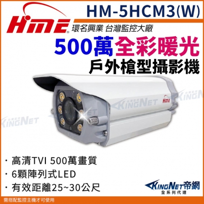 環名HME HM-5HCM3W 500萬 TVI同軸聲音 全彩暖光 防護罩戶外槍型攝影機 帝網 KingNet