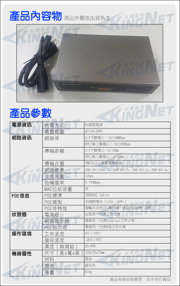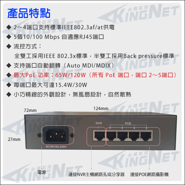 監視器 PoE網路交換機 工業型POE 電源供應器 集線器 5埠 IEEE 802.3af 乙太網路交換器 PoE Switch 網路供電換器 內建電源